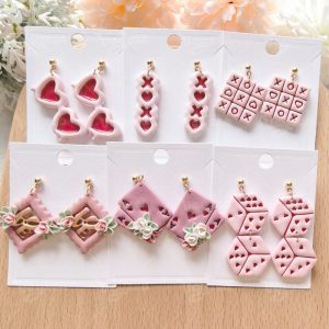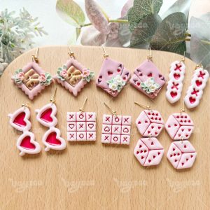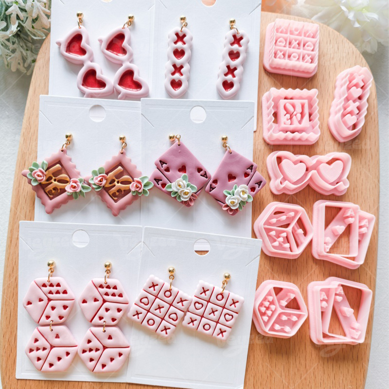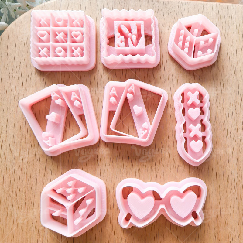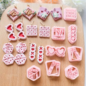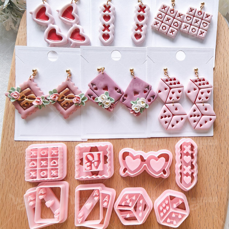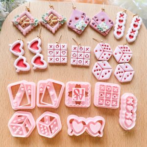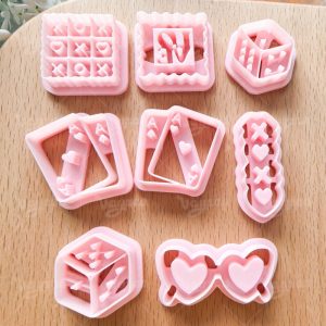 【Valentine’s Day Heart Shape Series Cutters Set 】8 polymer clay earring cutters:Valentine’s Day Heart Shape Element Polymer Clay Earring Mold Clay Cutters,Tic Tac Toe Dice Clay Cutters Set Clay Cutters,Including Love Glasses Clay Cutters, Dice Clay Cutters, Playing Cards Clay Cutters, Etc.