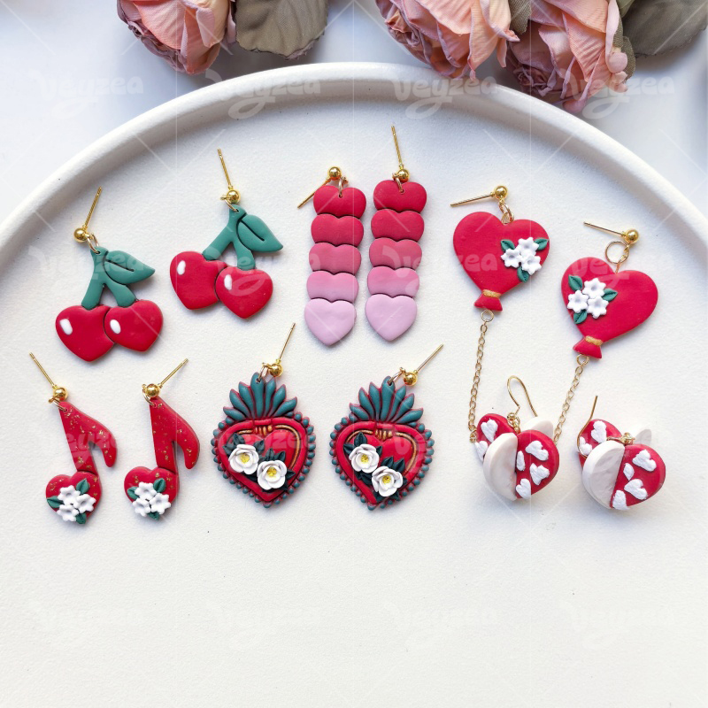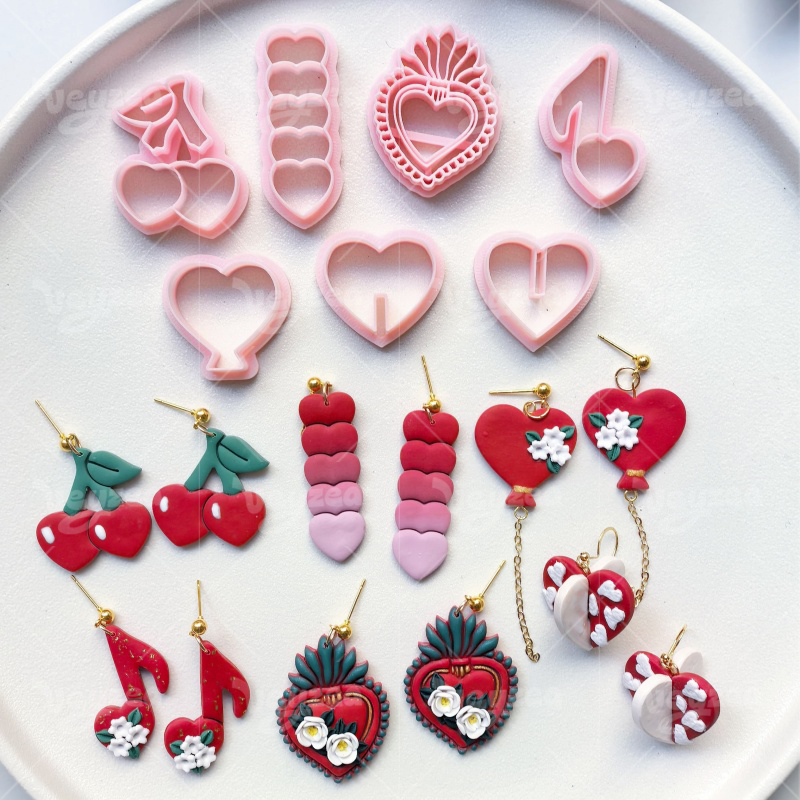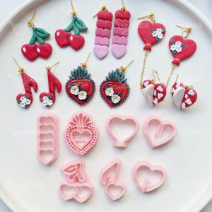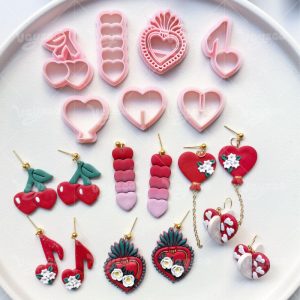 【Valentine’s Day Heart Shape Series Cutters Set 】7 polymer clay earring cutters:Valentine’s Day Heart Shape Polymer Clay Earring Mold Clay Cutters,Romantic Fresh Earrings Clay Mold Clay Cutters,Contains Heart Clay Cutters, Cherry Clay Cutters, Musical Note Clay Cutters, Love Balloon Clay Cutters, Etc.