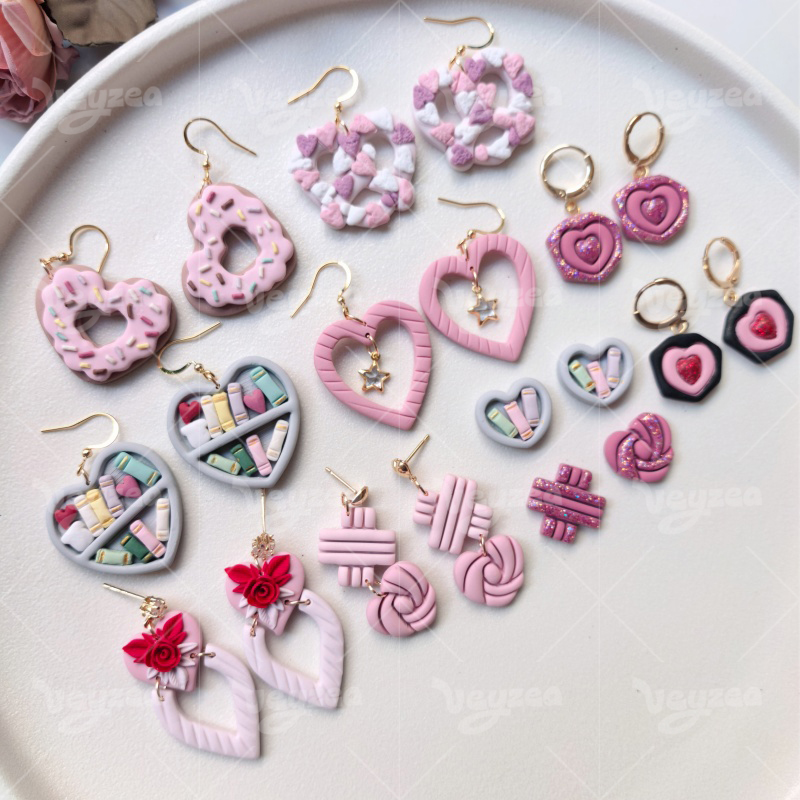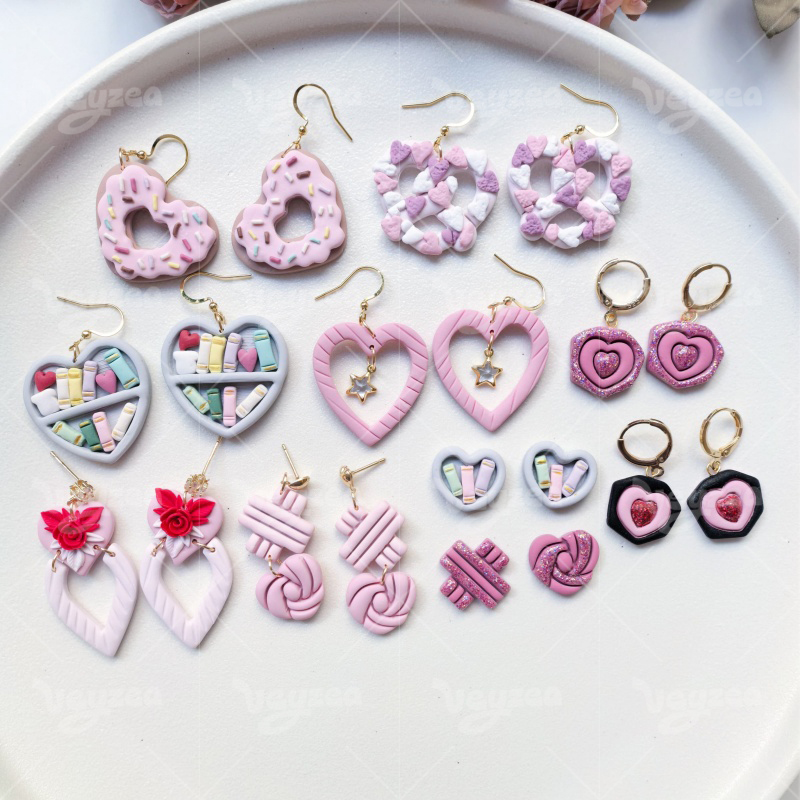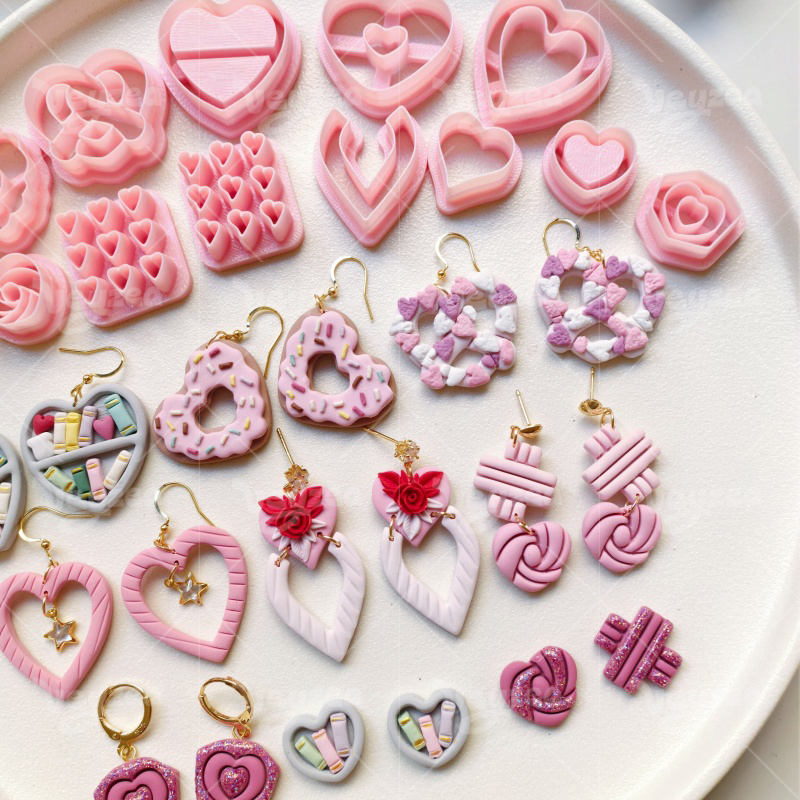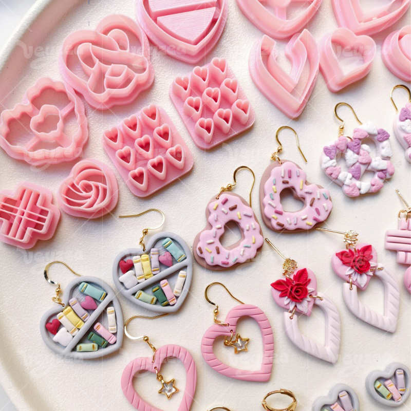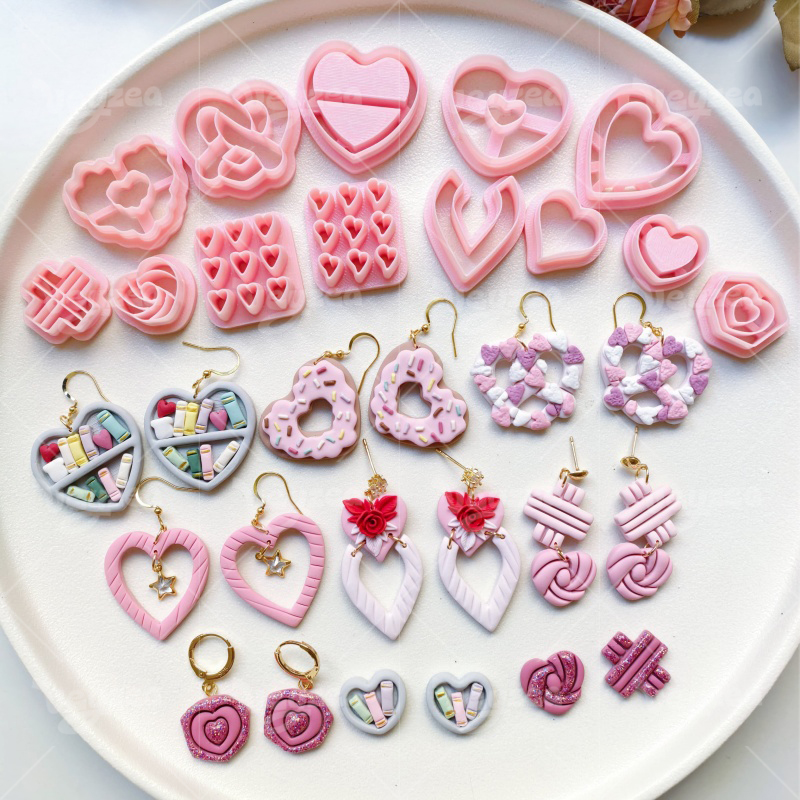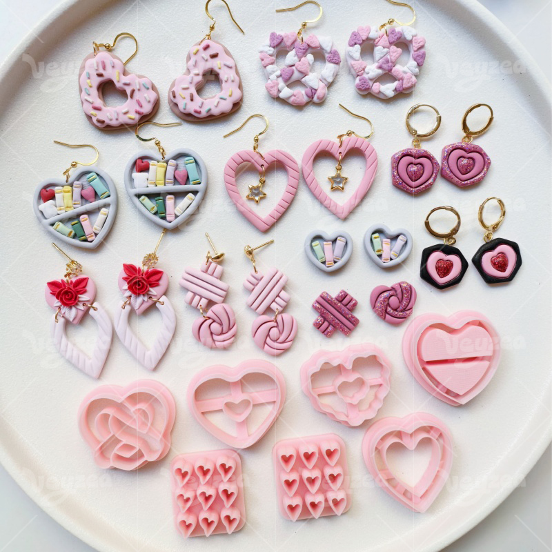 【Valentine’s Day Heart Shape Series Cutters Set 】13 polymer clay earring cutters:Valentine’s Day Heart-Shaped Polymer Clay Earring Mold Clay Cutters, Various Heart-Shaped Clay Cutters, Including Love Bookshelf Clay Cutters, Donut Clay Cutters, Letter Xo Clay Cutters, Etc.