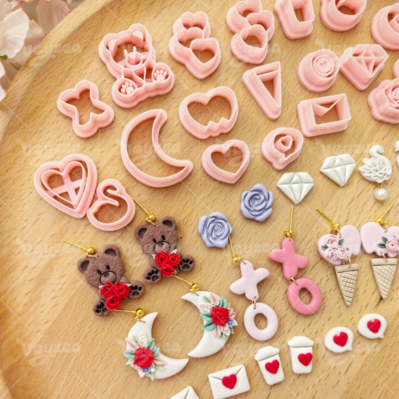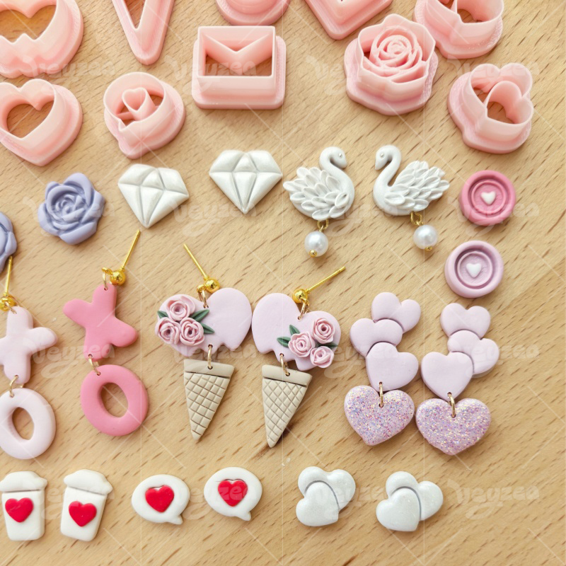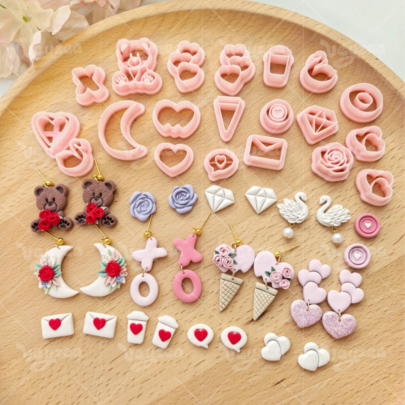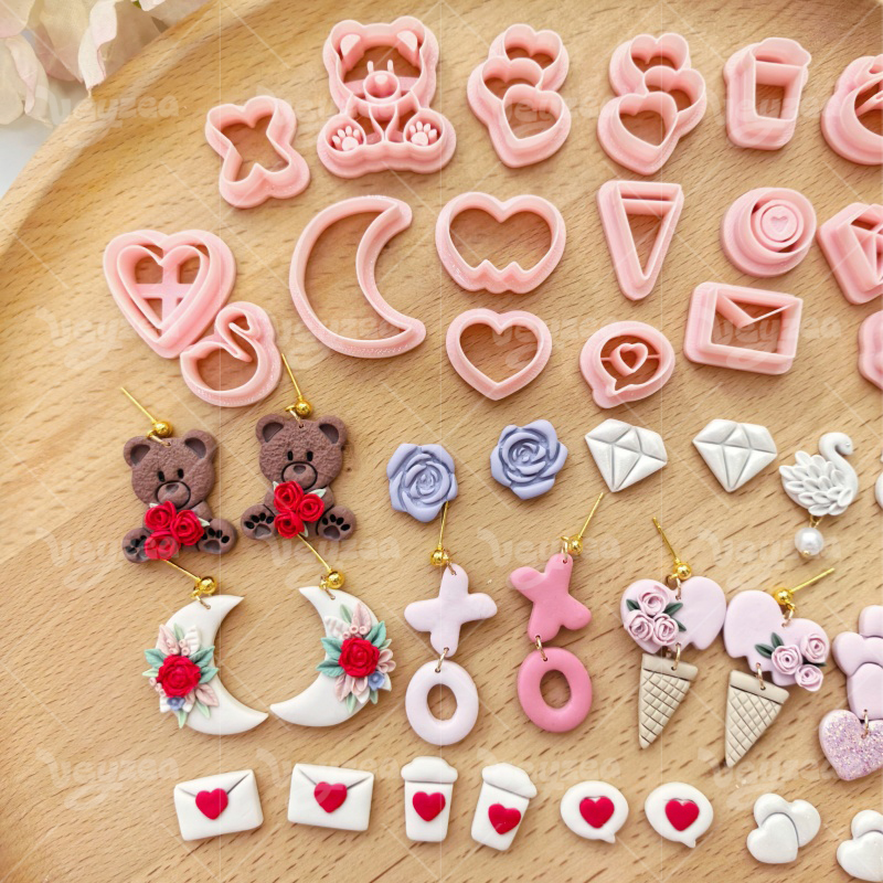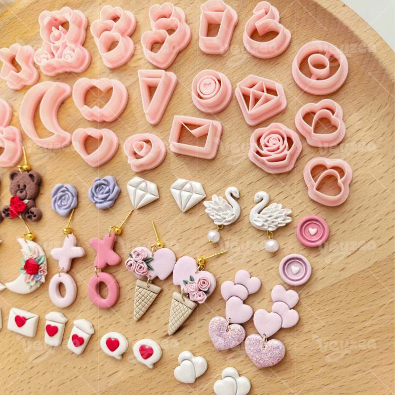 【Valentine’s Day Heart Shape Series Cutters Set 】20 polymer clay earring cutters:Valentine’s Day Love Element Polymer Clay Earring Mold Clay Cutters,Various Styles Of Cute Clay Cutters,Contains Heart Clay Cutters, Bear Clay Cutters, Moon Clay Cutters, Rose Clay Cutters, Swan Clay Cutters, Envelope Clay Cutters, Diamond Clay Cutters, Etc.