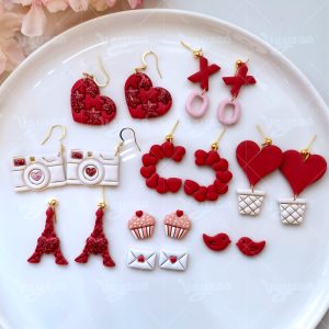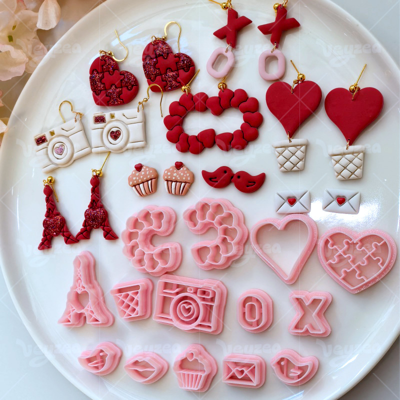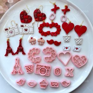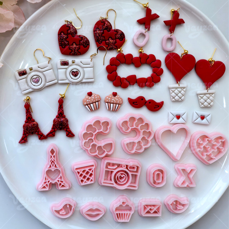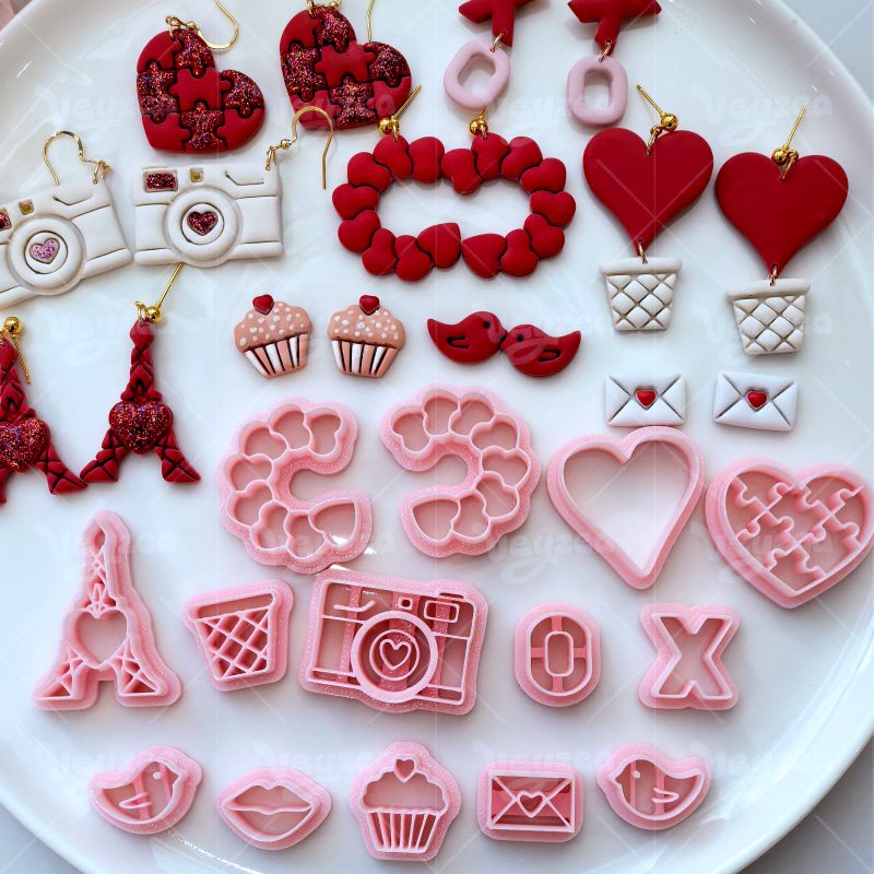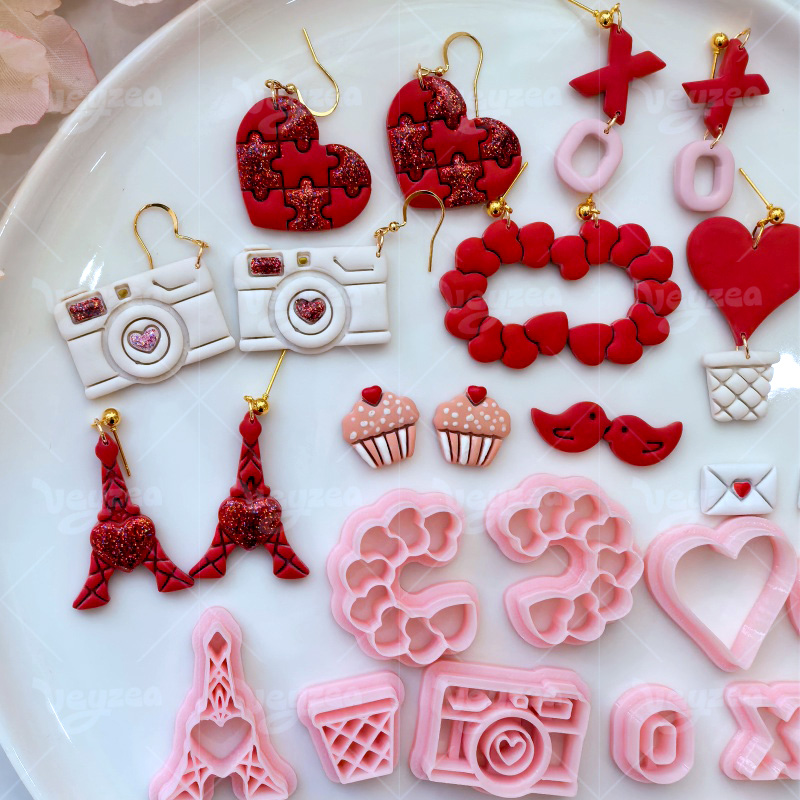 【Valentine’s Day Paris Romantic Heart Shape Cutters Set 】14 polymer clay earring cutters:Valentine’s Day Paris Romantic Heart Polymer Clay Earring Mold Clay Cutters,Various Styles Of Parisian Romantic Looks Clay Cutters,Contains Love Puzzle Clay Cutters, Retro Camera Clay Cutters, Hot Air Balloon Clay Cutters, Cupcake Clay Cutters, Etc.