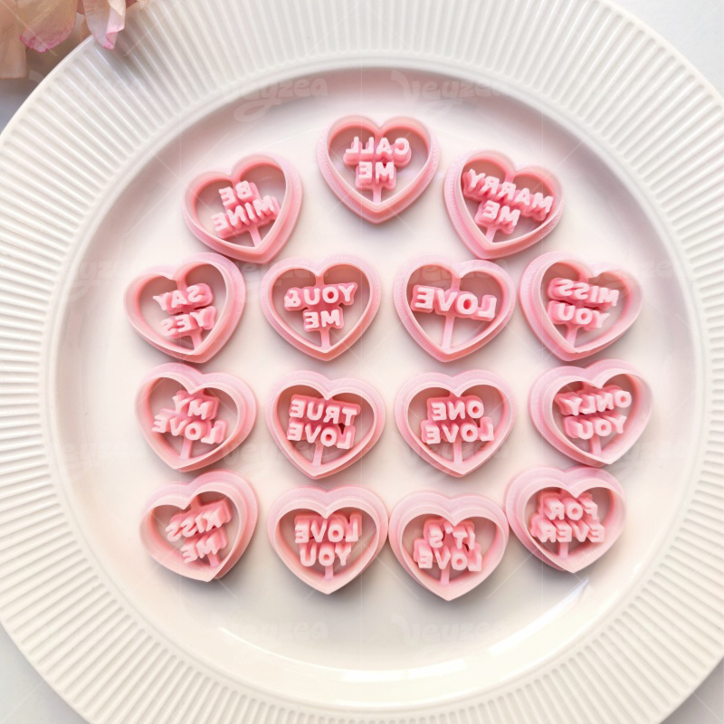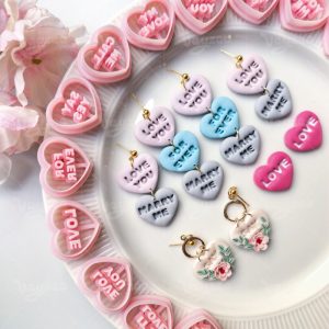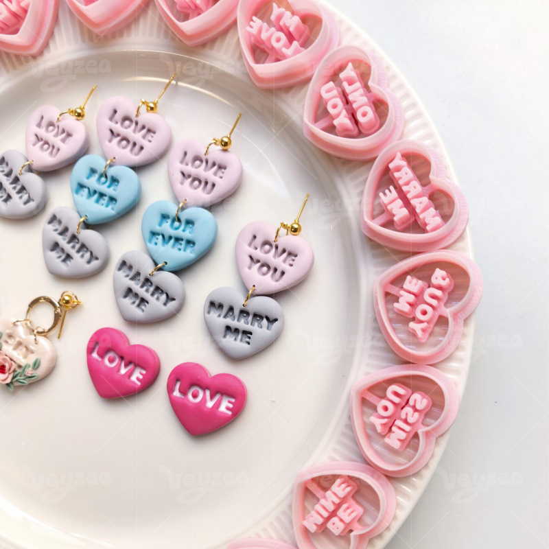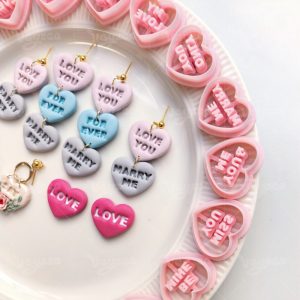 【Valentine’s Day Vintage Heart Text Cutters Set 】15 polymer clay earring cutters:Valentine’s Day Vintage Heart Text Polymer Clay Earrings Clay Cutters,Romance Clay Cutters Set,Contains Romantic Words Such As “Love You”, “Marry Me”, “Call Me” And “Forever”, Full Of Sweetness And Nostalgia.