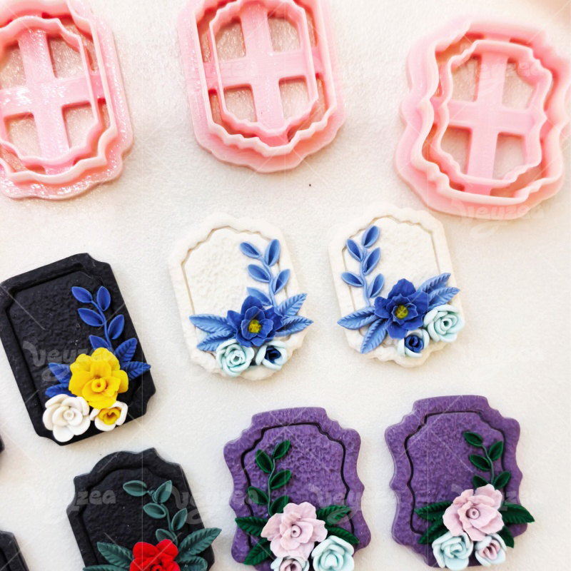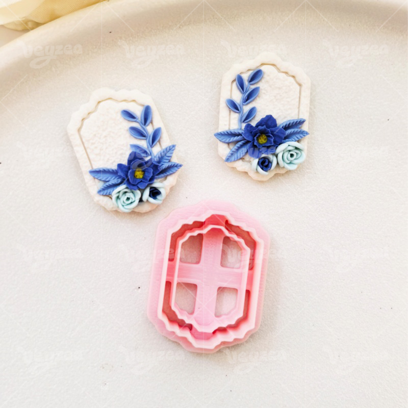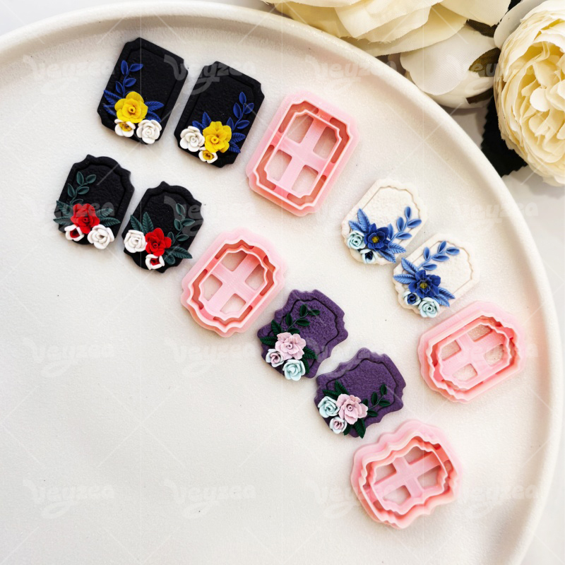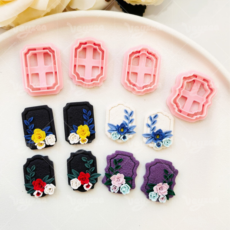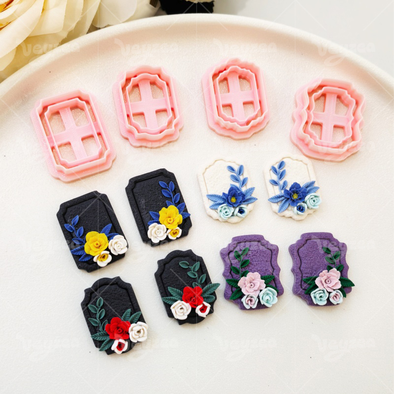 【 Vintage Geometric Cutters Set 】4 polymer clay earring cutters:Vintage Flower Frame Polymer Clay Earring Mold Clay Cutters,Geometric Frame Clay Cutter Set Clay Cutters,Retro Photo Frames In Various Silhouettes Can Be Paired With Three-Dimensional Floral Decorations.