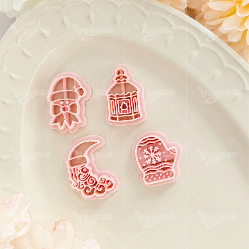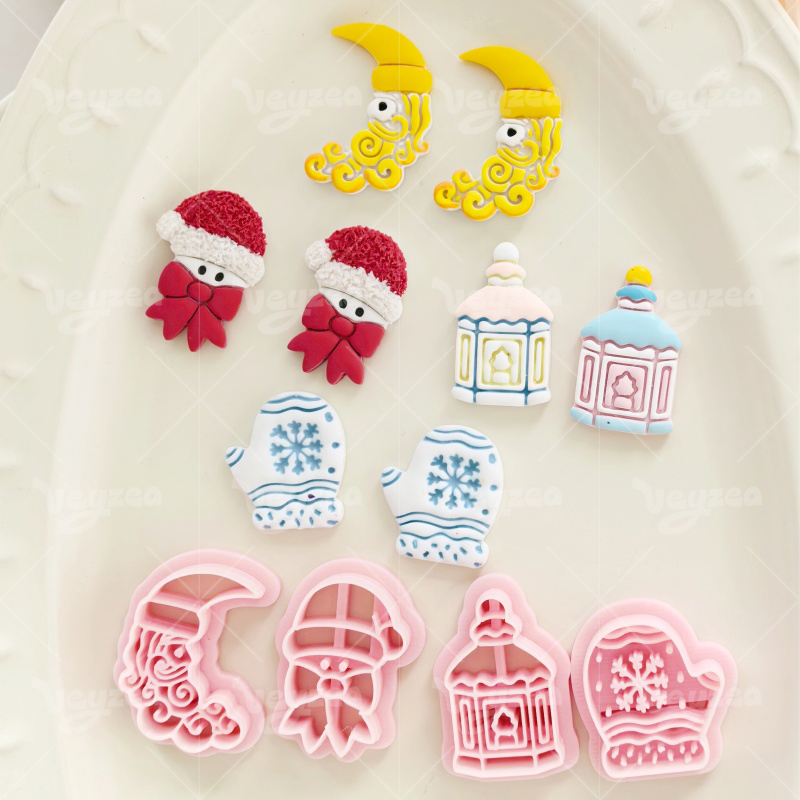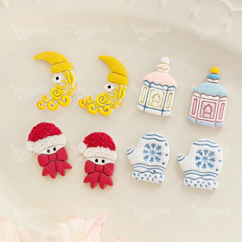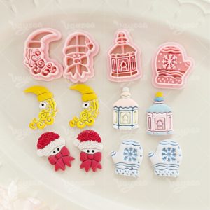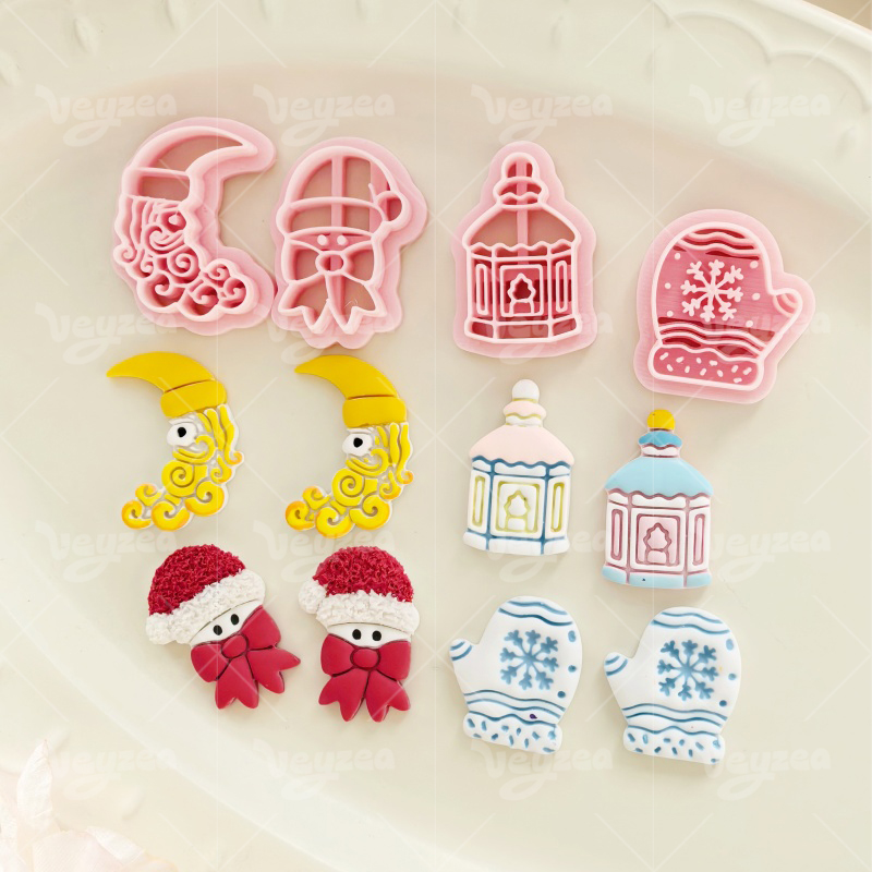 【 Winter Fairytale Series Cutters Set 】4 polymer clay earring cutters:Winter Fairytale Polymer Clay Earring Mold Clay Cutters,Fantasy Winter Earrings Clay Mold Clay Cutters,Contains Fairy-Tale Winter Elements Such As The Moon, Retro Lanterns, Snowflake Gloves, Etc.